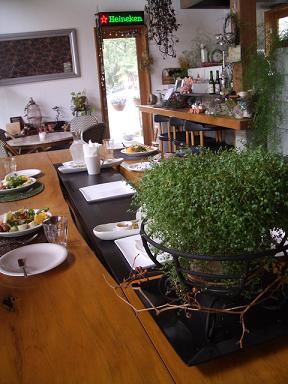 一泊したあとの朝食準備中。